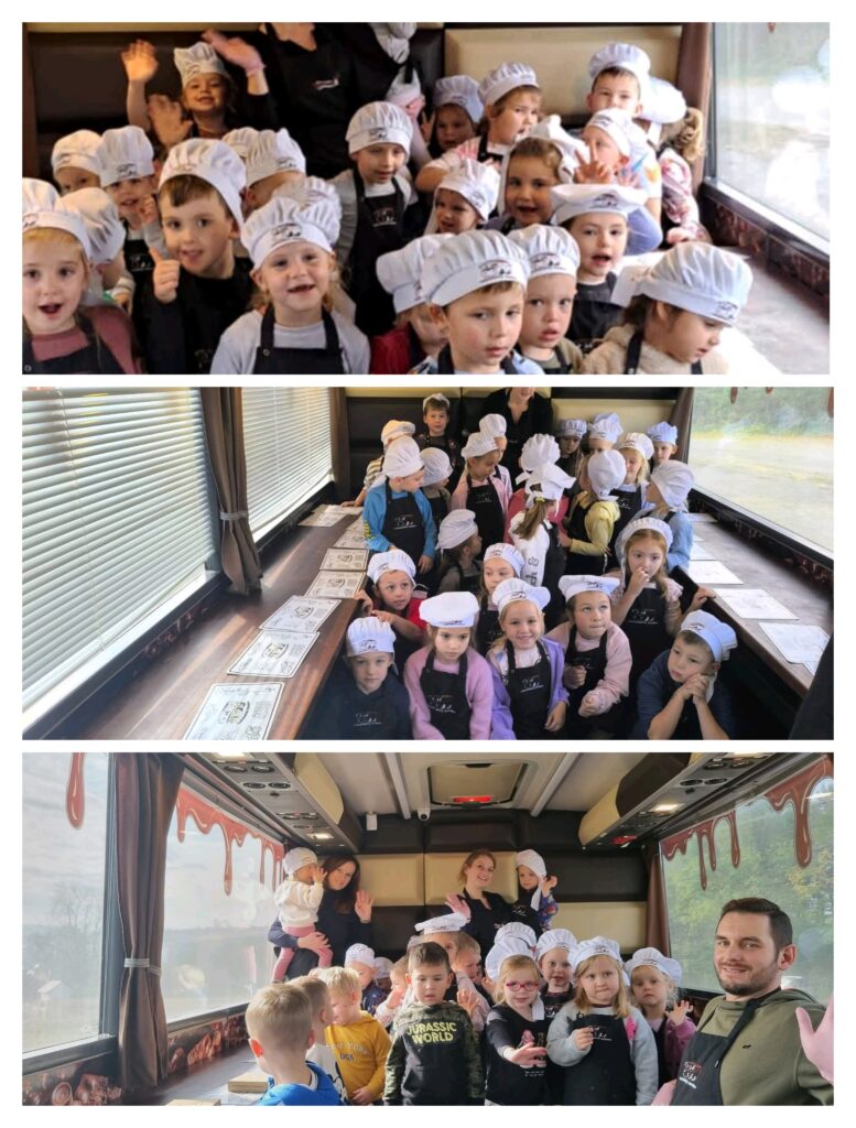 Dziś nasze przedszkolaki miały okazję uczestniczyć w słodkiej atrakcji🍫. Na parkingu nieopodal przedszkola zaparkował wyjątkowy gość – Czekoladowy Autobus, w którym odbyły się słodkie i pełne emocji warsztaty czekoladowe! 😍Podczas zajęć dzieci:🍫 poznały historię czekolady oraz proces jej pozyskiwania,🍫zobaczyły z bliska, jak wygląda prawdziwy owoc kakaowca,🍫 spróbowały trzech rodzajów czekolady,🍫 wykonały i ozdobiły własne czekoladowe figurki w foremkach,🍫 a także stworzyły czekoladowe obrazki, które samodzielnie przyozdobiły.